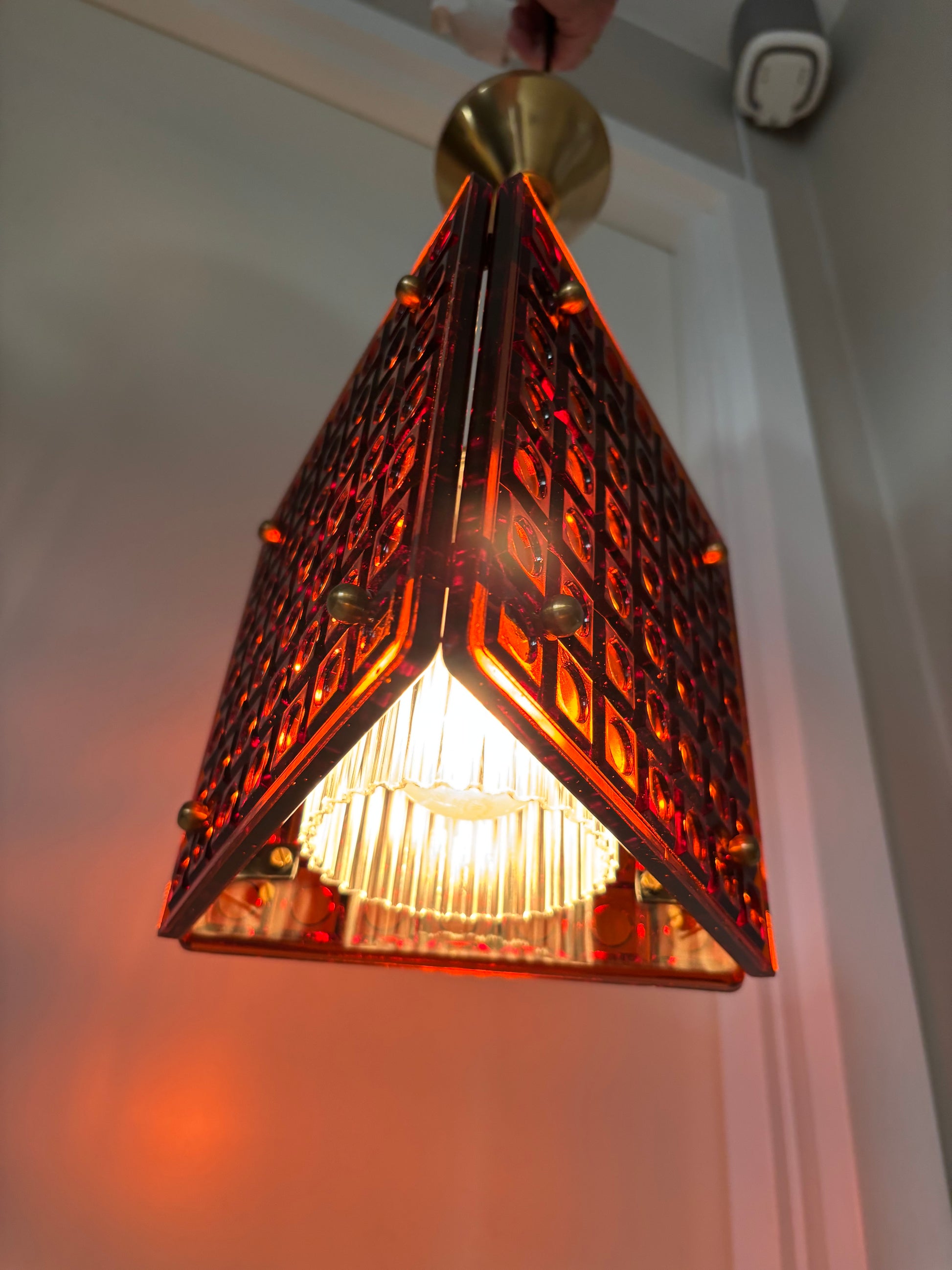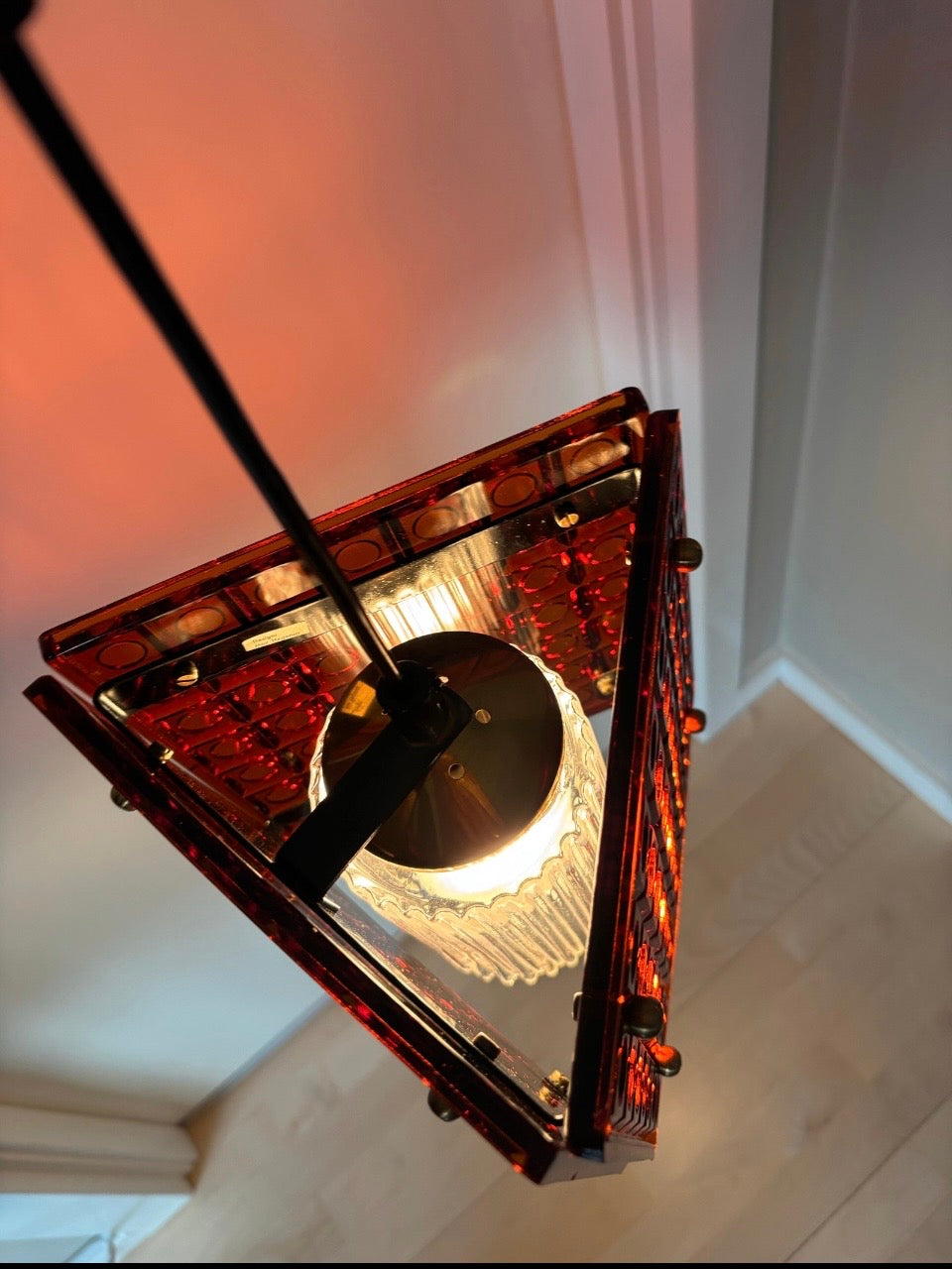 Super smuk og sjælden Mac Hegerup pendel bestående af 3 stk kvadratiske glas i vaffel design.